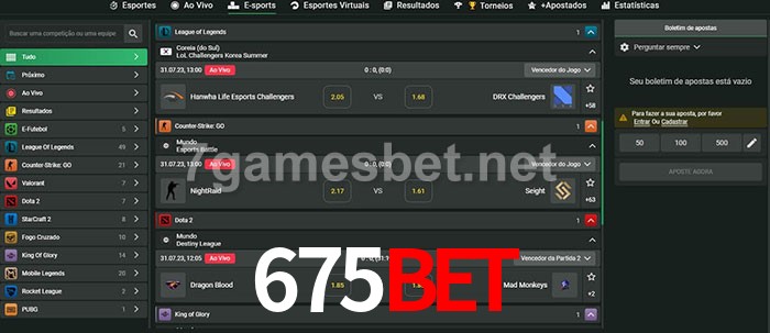O 675bet oferece uma grande seleção de opções de apostas em e-sports com probabilidades competitivas